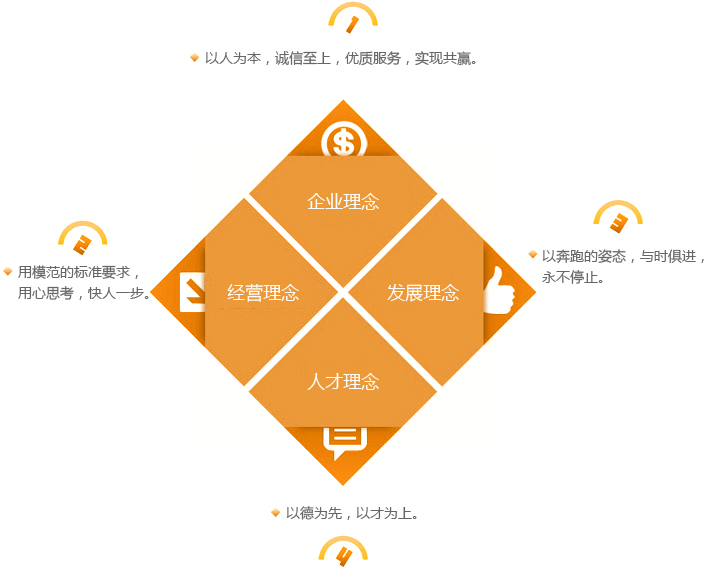 回報(bào)社會(huì)、構(gòu)筑和諧。服務(wù)人民大眾,振興民族經(jīng)濟(jì);質(zhì)量是企業(yè)的生命;顧客是完美的衣食父母;遵守國家法律,弘揚(yáng)法制精神,伸張社會(huì)正義,爭做守法公民;爭創(chuàng)效益,回報(bào)社會(huì);以人為本,以才興企,廣納賢才。