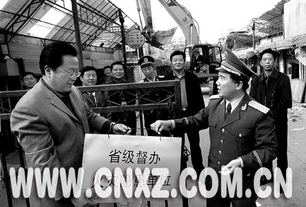 11月8日下午,省級督辦、市級掛牌的我市重大火災(zāi)隱患單位宣武市場,由于其東市場的整體拆除而摘下了警示牌。這是我市歷史上第一次對重大火災(zāi)隱患部位實(shí)施整體拆除。明年,一個(gè)現(xiàn)代化的新市場將在原址建成。
